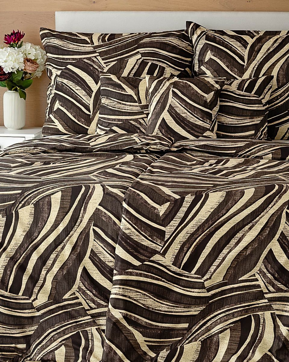 Bavlněné povlečení s motivem vlnek v hnědých a smetanových barvách. Souprava je vyrobena ze 100% bavlny a obsahuje jeden povlak na přikrývku 140 x 200 cm a jeden povlak na polštář 70 x 90 cm. Zapínání na zip.Povlečení z kolekce Matějovský ze 100% bavlny. U povlečení z kolekce Matějovský je použit vysoce kvalitní materiál se speciální úpravou, díky které je pevnější a zachová si svůj tvar i po mnoha vypráních. Díky speciální technice tisku je také zaručena barevná stálost. Povlečení doporučujeme prát na 40°C tiskem dovnitř, při nastavení nižších otáček ždímání si také usnadníte žehlení s vyjímkou krepového povlečení, které se nežehlí. Vyberte si to pravé právě pro Vás!