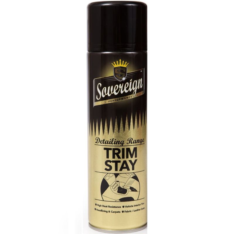 Automotive čalounické lepidlo ve spreji SOVEREIGN TRIM STAY, 500 ml – vysoká pevnost, odolné do 130 °C, pro stropnice a pěny