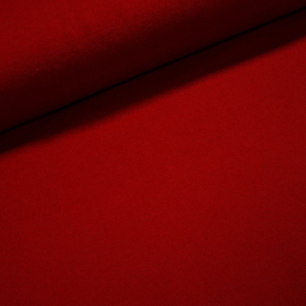 Elastický bavlněný úplet (jersey) v jednobarevné červené barvě. Je vyroben z 90% bavlny a 10% elastanu (gramáž 220g/m2). Látka je v šířce 180 cm.