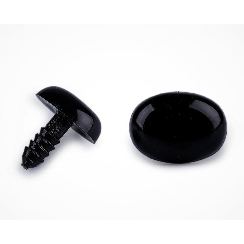 Bezpečnostní oči nebo čumáček z tvrzeného plastu v jednobarevné černé barvě s průměrem 12mm v oválném tvaru. Oči nebo čumáček jsou vhodné pro výrobu hraček, dekorací a další doplňky. Díky bezpečnostní zarážce proti vypadnutí jsou oči / čumáček odolnější vůči vytrhnutí nebo sloupnutí z výrobku. Cena je za 1ks včetně zarážky. Objednávat lze pouze jako pár (2ks).