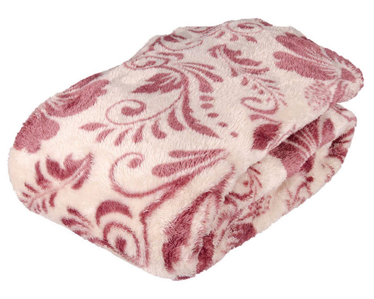 Deka z mikrovlákna beránek KVĚTY, tmavě růžová, 150x200cm