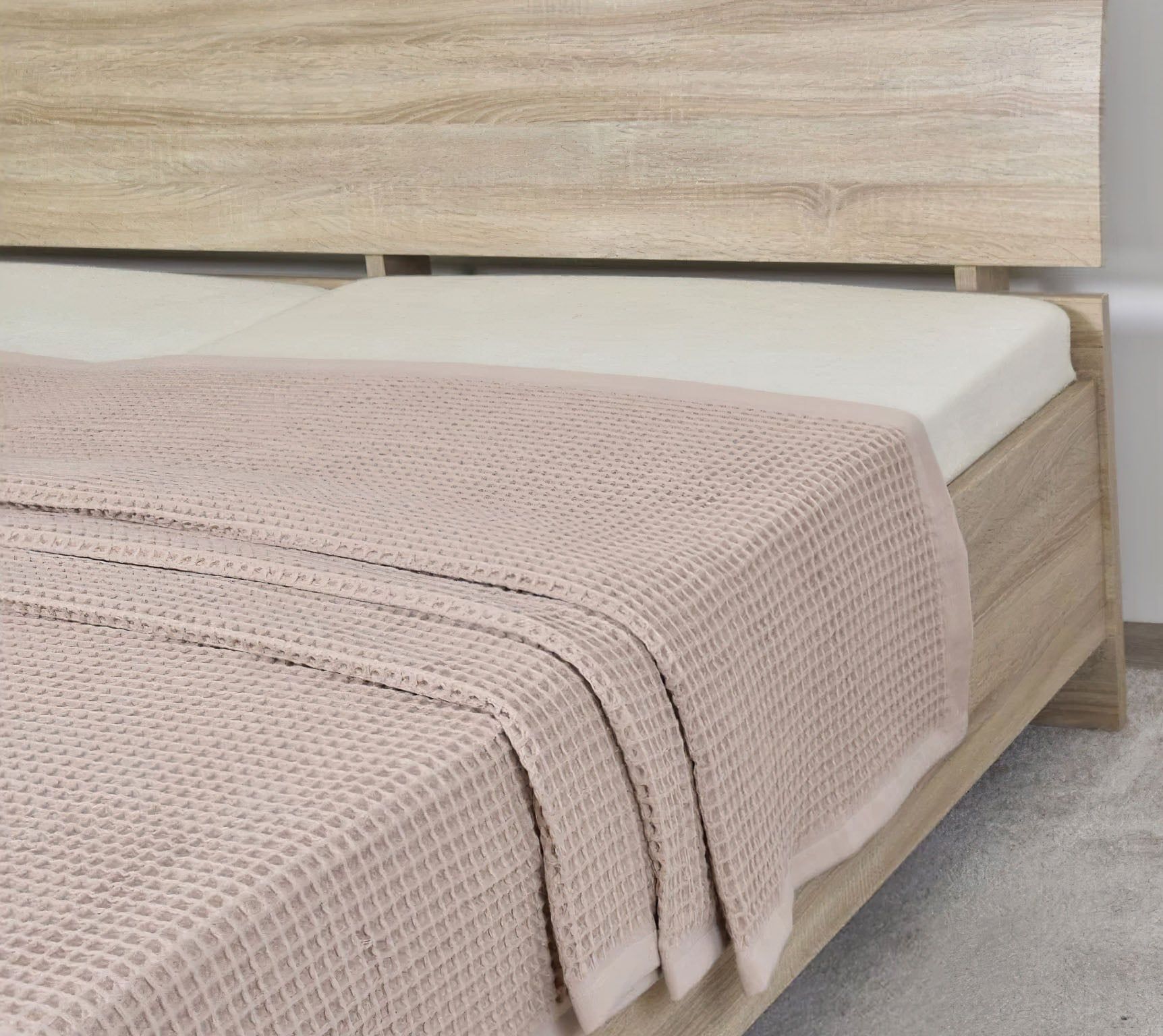 Přehoz na postel bavlněný OPTIMUS, jednobarevný pudrový, vaflový, 225x230cm, dvoulůžkový