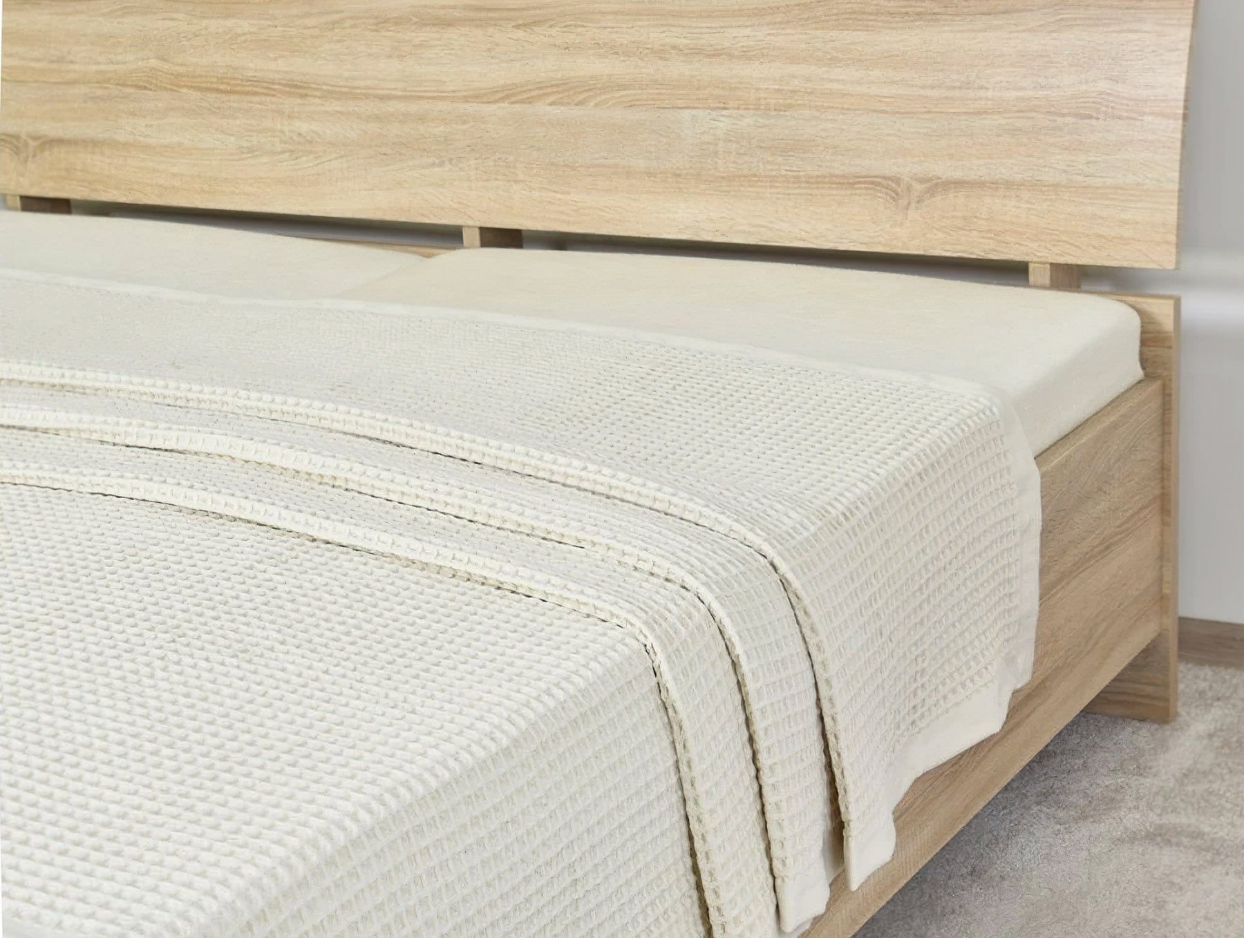Přehoz na postel bavlněný s vaflovým vzorem v jednobarevném smetanovém provedení. Přehoz je k dispozici na dvoulůžko v rozměru 225 x 230 cm ze 100% bavlny 370 g/m2.
