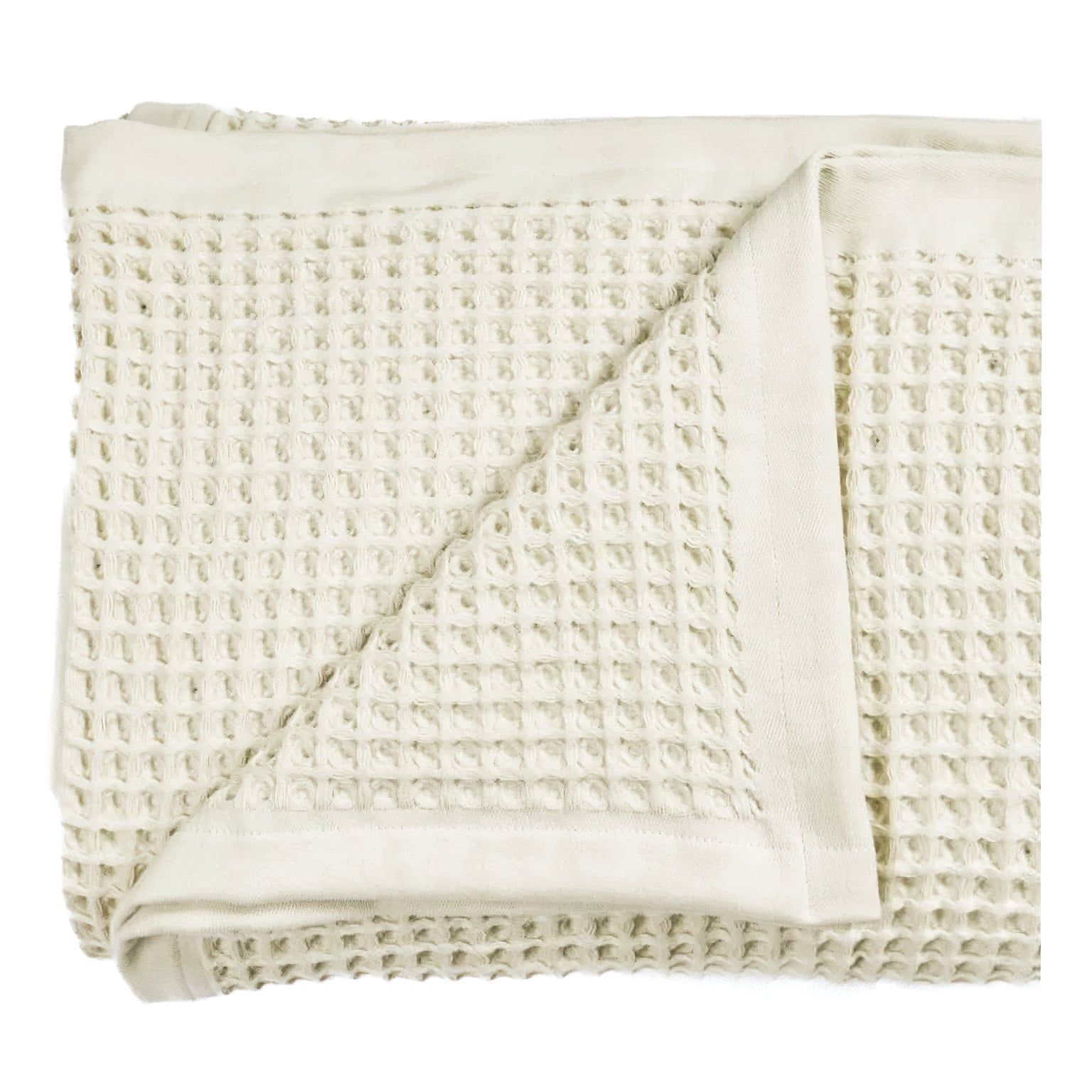 Přehoz na postel bavlněný s vaflovým vzorem v jednobarevném smetanovém provedení. Přehoz je k dispozici na dvoulůžko v r...