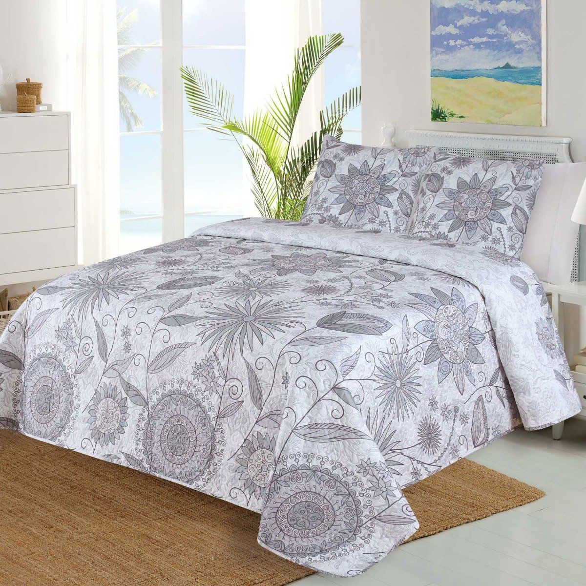 Přehoz na postel PRADO šedý, květinový vzor, 220x240cm, dvoulůžkový + 2x povlak 45 x 45cm Přehoz na postel PRADO šedý, květinový vzor, 220x240cm, dvoulůžkový + 2x povlak 45 x 45cm
