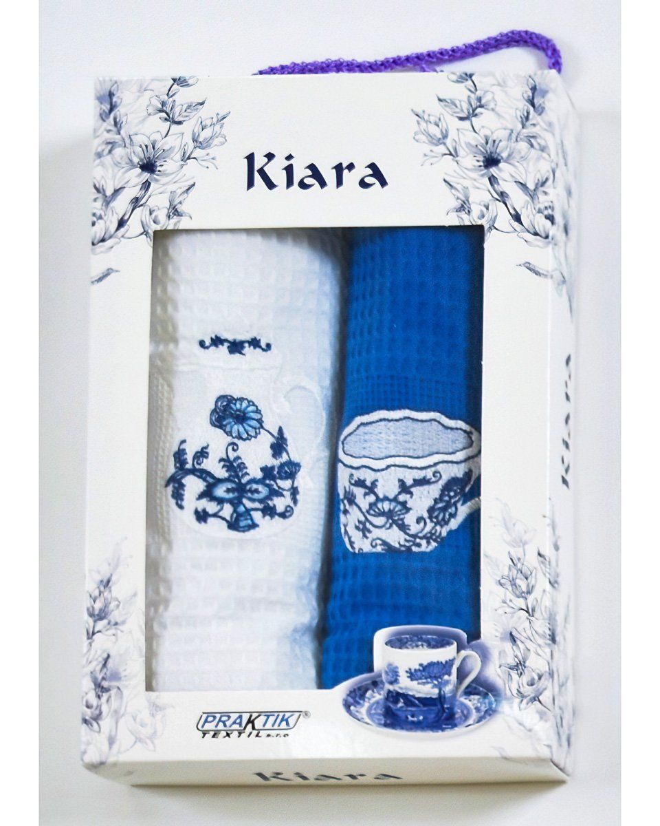 Utěrky KIARA 142 vaflové vyšívané, dárkové balení, hrníček a konvička, modro-bílá, 2 kusy 50x70cm