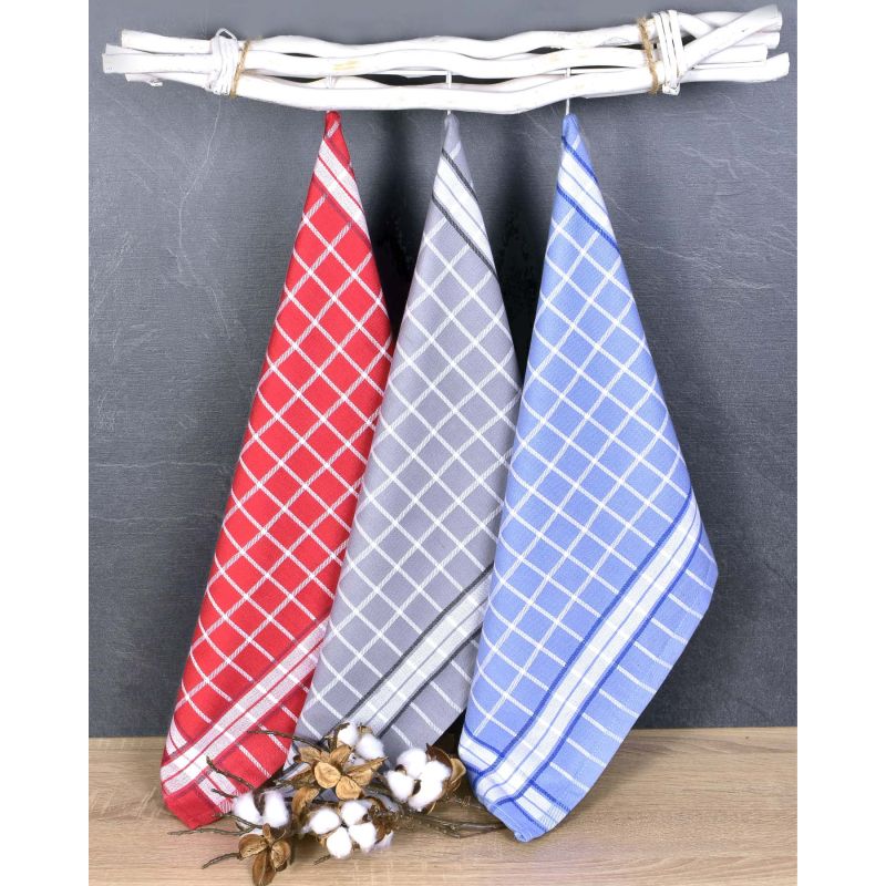Kuchyňské utěrky EGYPTSKÁ BAVLNA DOLCE MIX, modrá, červená a šedá kostka, 3 kusy, 50x70cm