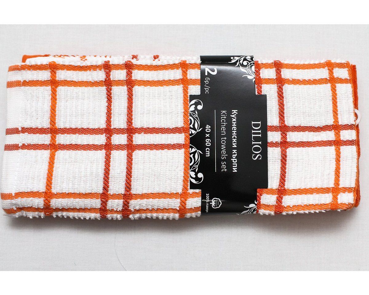 Kuchyňské utěrky froté KOSTKA, oranžovo-bílé, 2 kusy 40x60cm