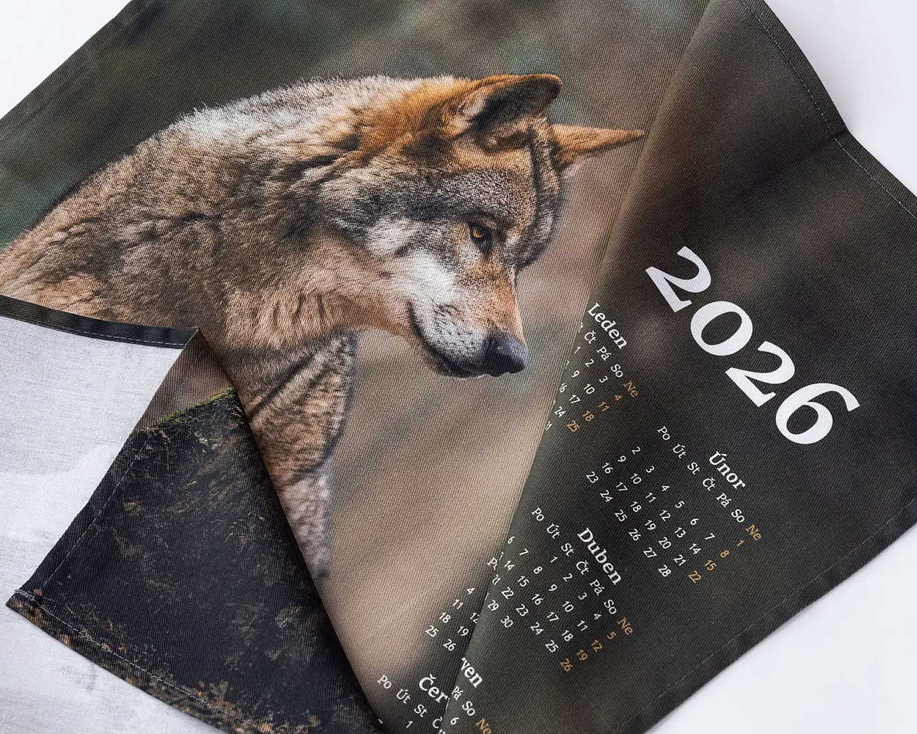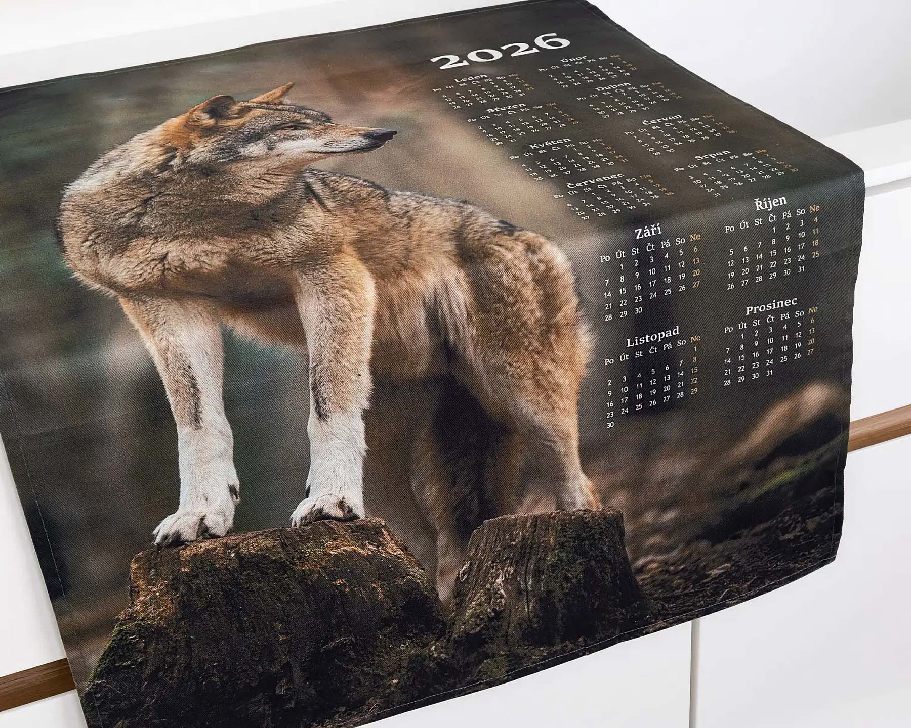 Textilní kalendář, utěrka VLK 2026, hnědo-zelený, 50x70cm, bez hůlky Textilní kalendář, utěrka VLK 2026, hnědo-zelený, 50x70cm, bez hůlky Textilní kalendář, utěrka VLK 2026, hnědo-zelený, 50x70cm, bez hůlky Textilní kalendář, utěrka VLK 2026, hnědo-zelený, 50x70cm, bez hůlky