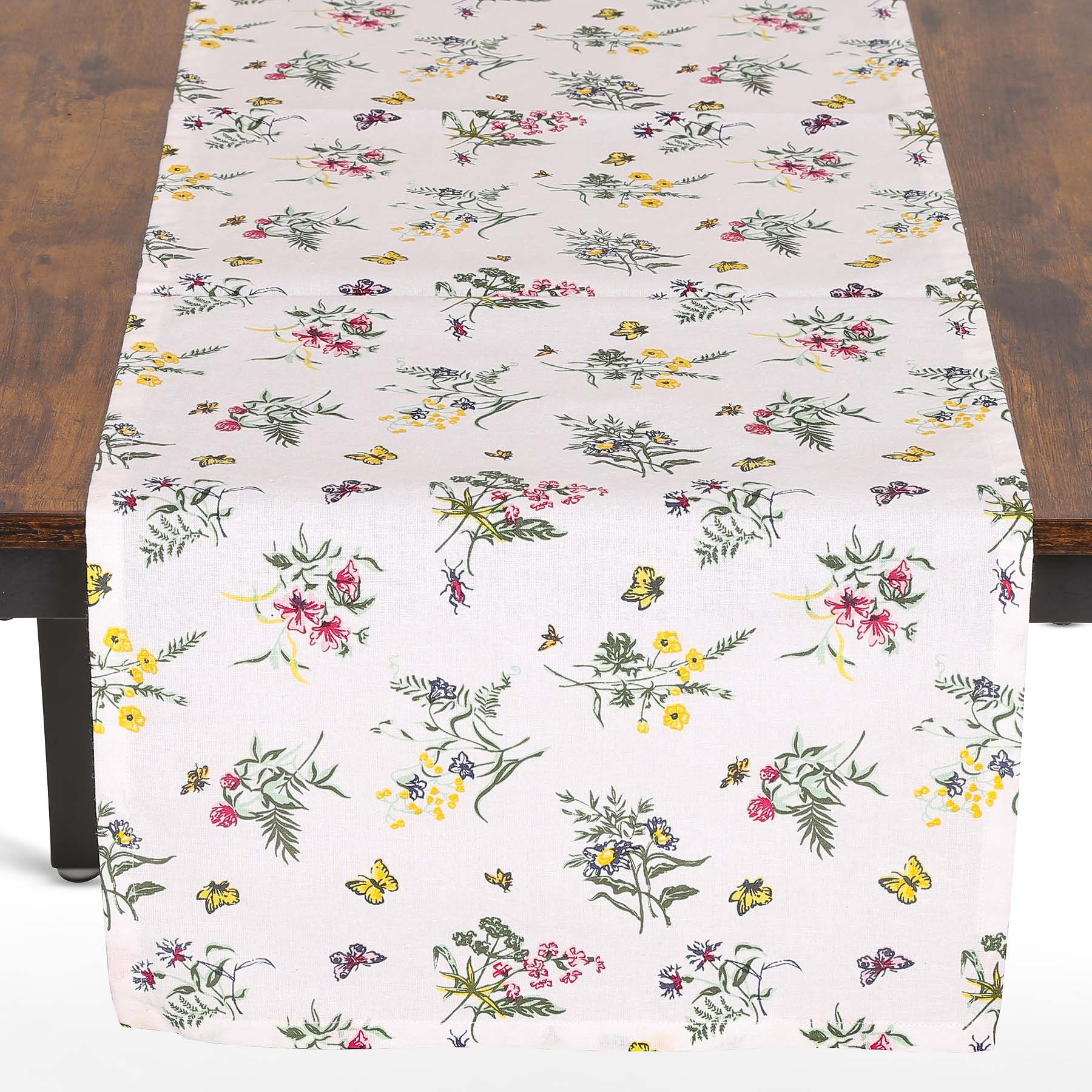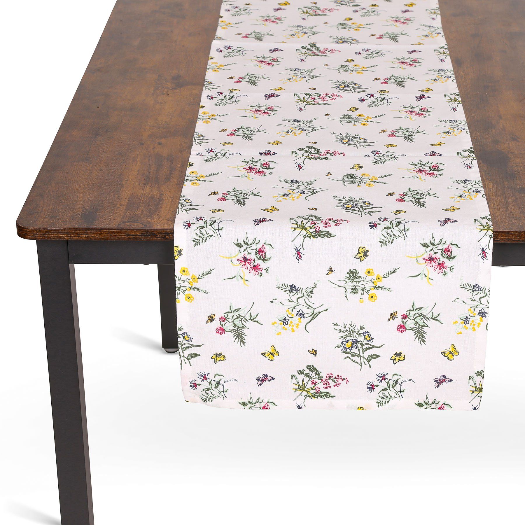 Kuchyňský ubrus je vyroben ze 100% bavlny v obdélníkovém rozměru 35x180 cm s motivem lučních květů na bílém podkladu.