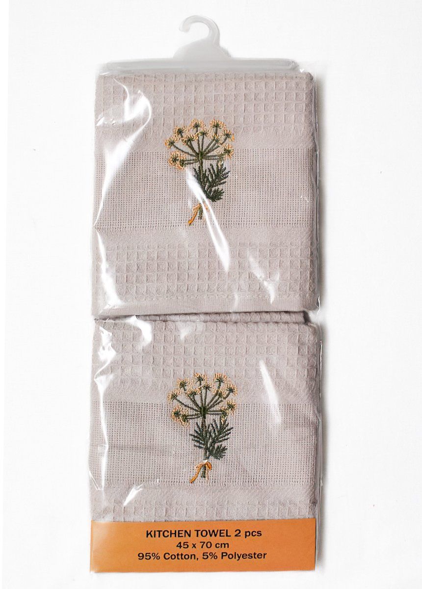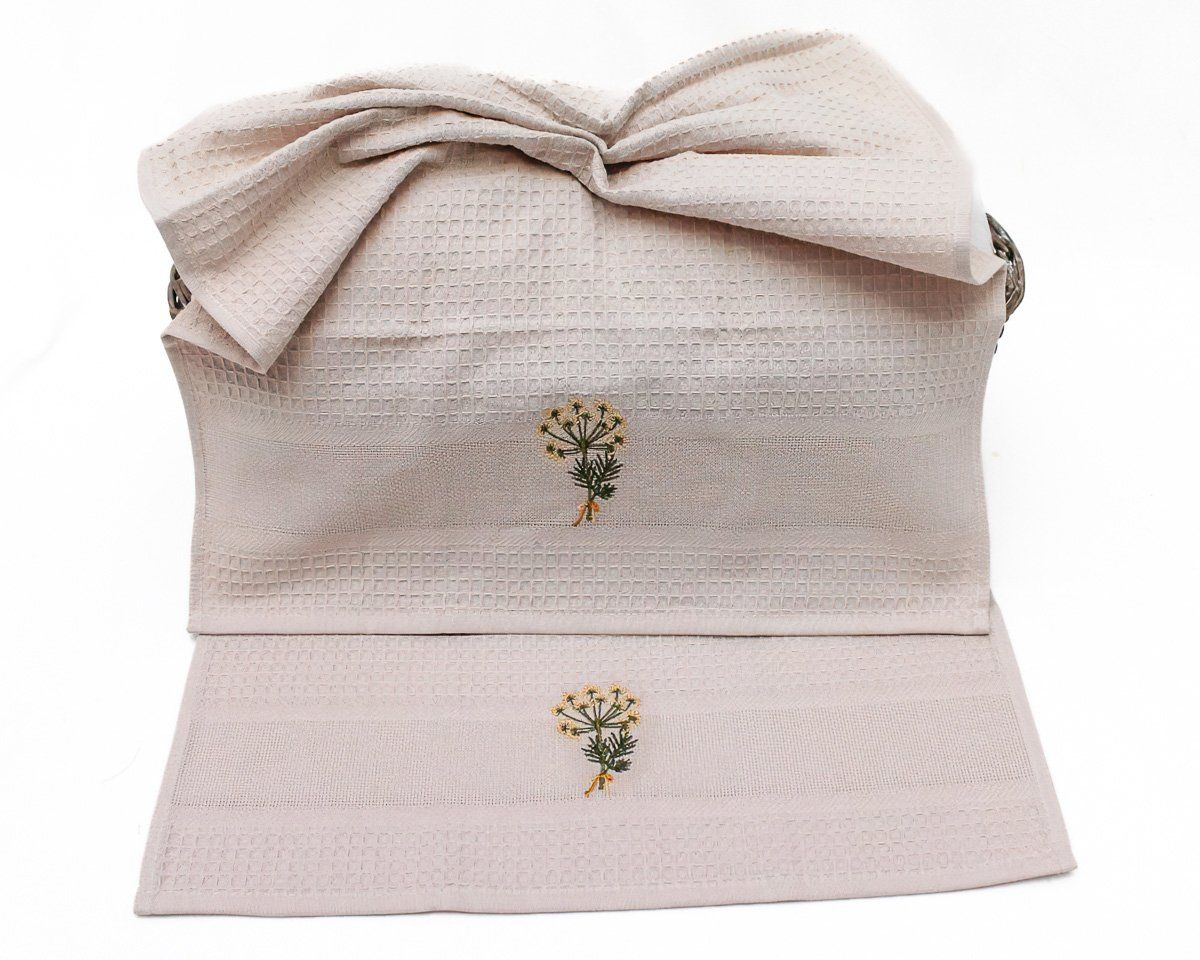 Kuchyňské utěrky KMÍN vaflové vyšívané, béžová, 2 kusy 45x70cm