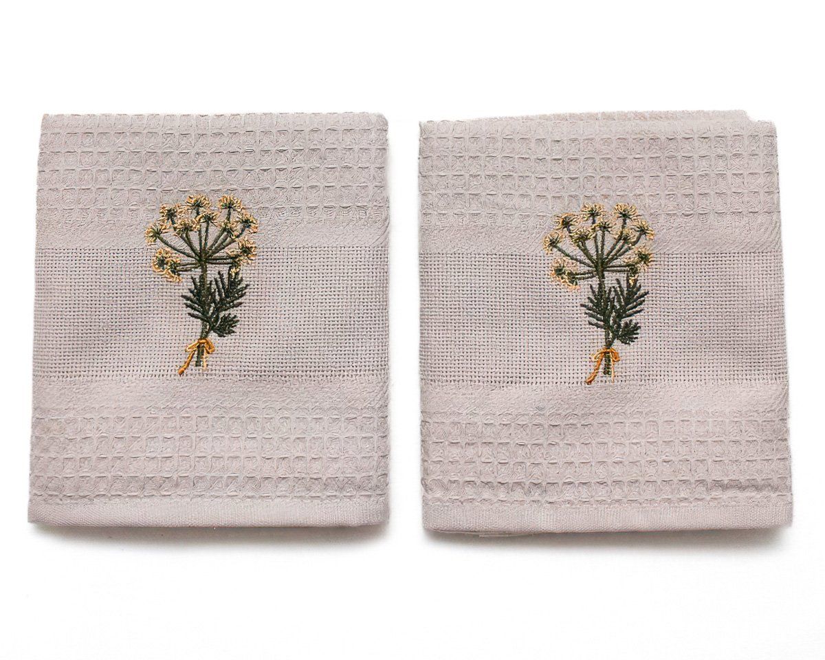 Vaflové utěrky s motivem snítky kmínu na béžovém podkladu. Balení obsahuje 2 kusy barevně sladěných utěrek v rozměru 45x...