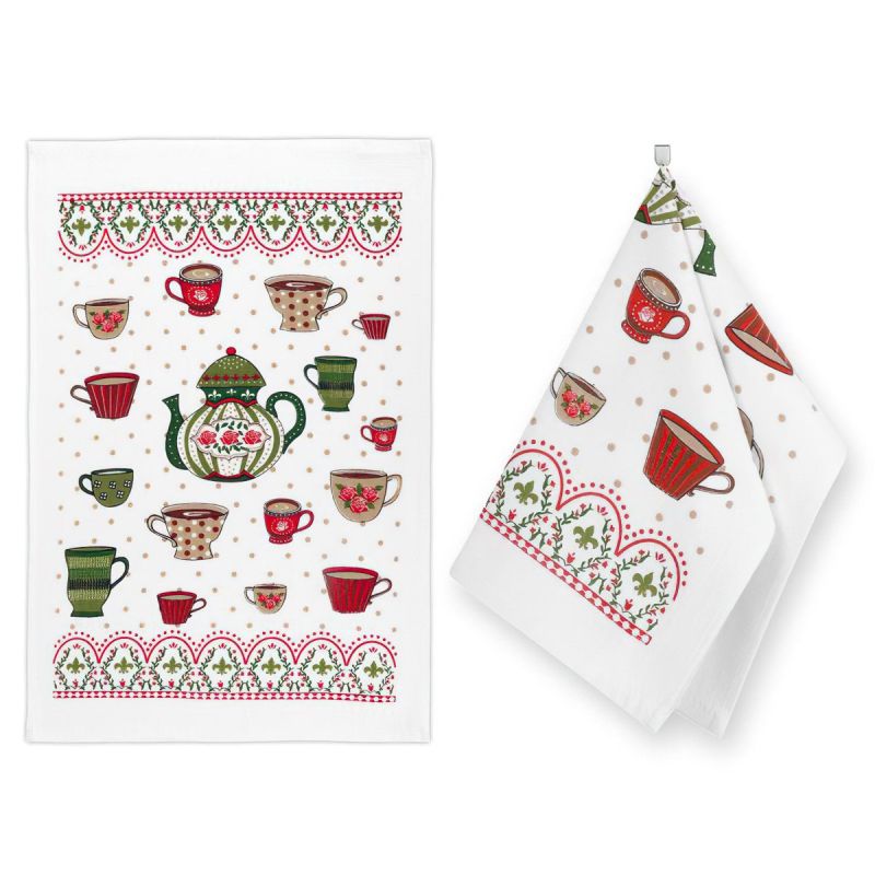Froté kuchyňská utěrka ze 100% bavlny (gramáž 350g/m2) v rozměru 40x60cm se vzorem čajové konvičky na bílém podkladu. Utěrka je z lícové strany v hladkém provedení, z rubové strany má provedení froté. Froté utěrky dobře absorbují vodu, dokonale s nimi utřete jakýkoliv mokrý povrch.