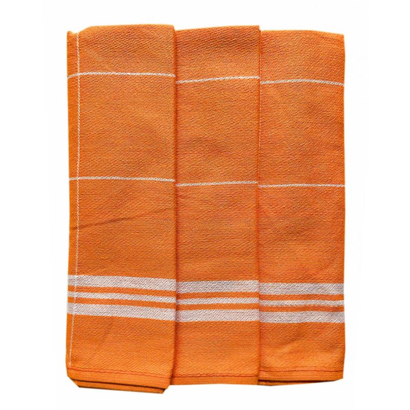 Souprava tří kusů kuchyňských utěrek z exkluzivní egyptské bavlny v rozměru 50x70cm se vzorem proužků v oranžovém provedení.