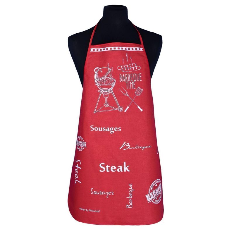 Kuchyňská zástěra je vyrobena ze 100% bavlny v rozměru 63x80 cm s potřebami na grilování a nápisu barbeque time v červeném provedení.