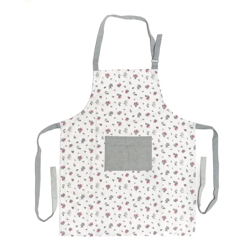Kuchyňská zástěra je vyrobena ze 100% bavlny v rozměru 60x75 cm s motivem růžovo-šedých kytiček.