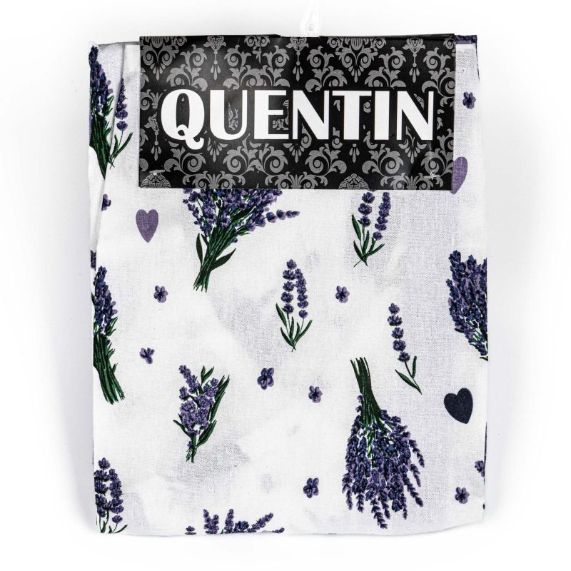 Kuchyňská zástěra je vyrobena ze 100% bavlny v rozměru 60x75 cm se vzorem levandule a bílém podkladu.