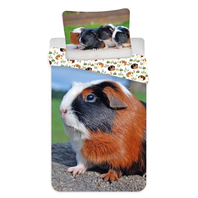 Dětské bavlněné povlečení se vzorem morčete. Povlečení je oboustranné, z druhé strany jsou kreslené morčátka na bílém podkladu. Souprava je vyrobena ze 100% bavlny renforcé a obsahuje jeden povlak na přikrývku 140 x 200 cm a jeden povlak na polštář 70 x 90 cm. Zapínání na zip....