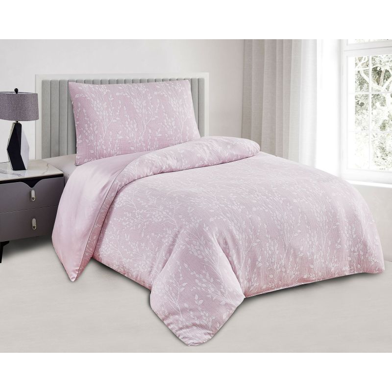 Povlečení letní BOSTON RŮŽOVÝ, rostlinný motiv, žakárové, 140x200cm + 70x90cm
