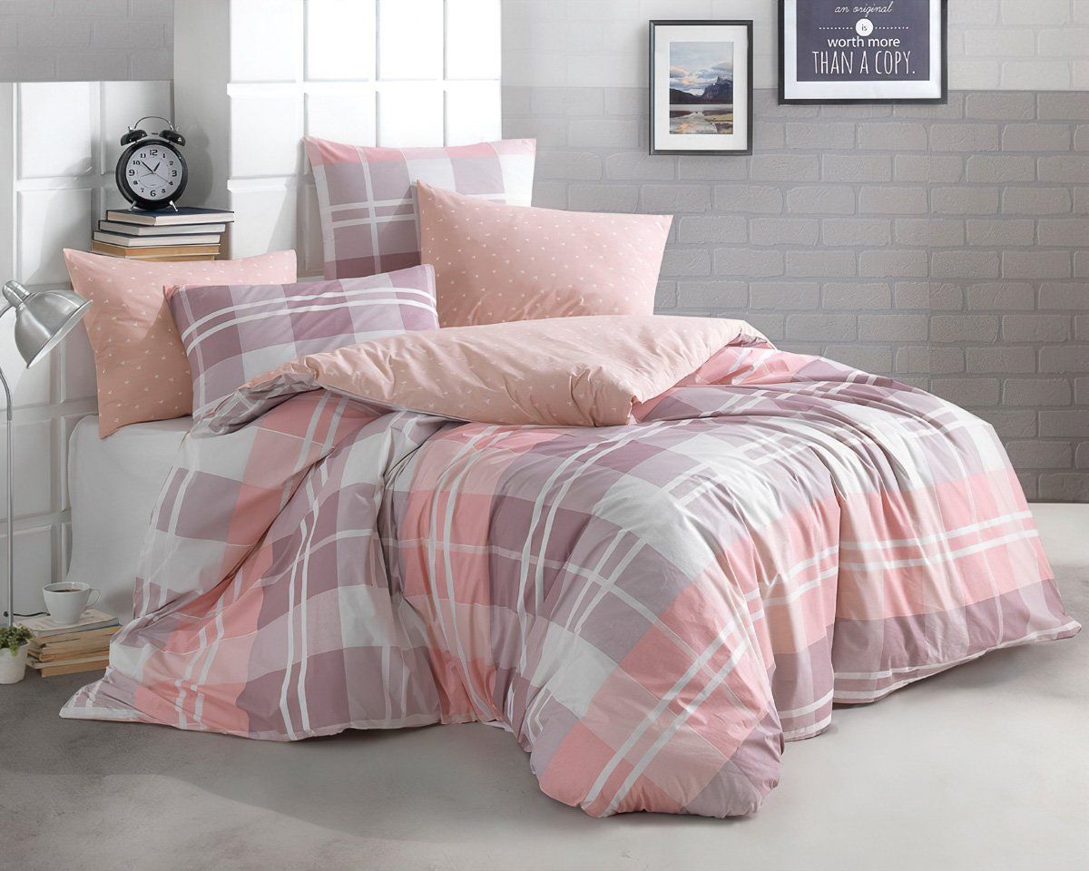 Povlečení MARK RŮŽOVÉ, kárované, bavlna hladká, 140x200cm + 70x90cm
