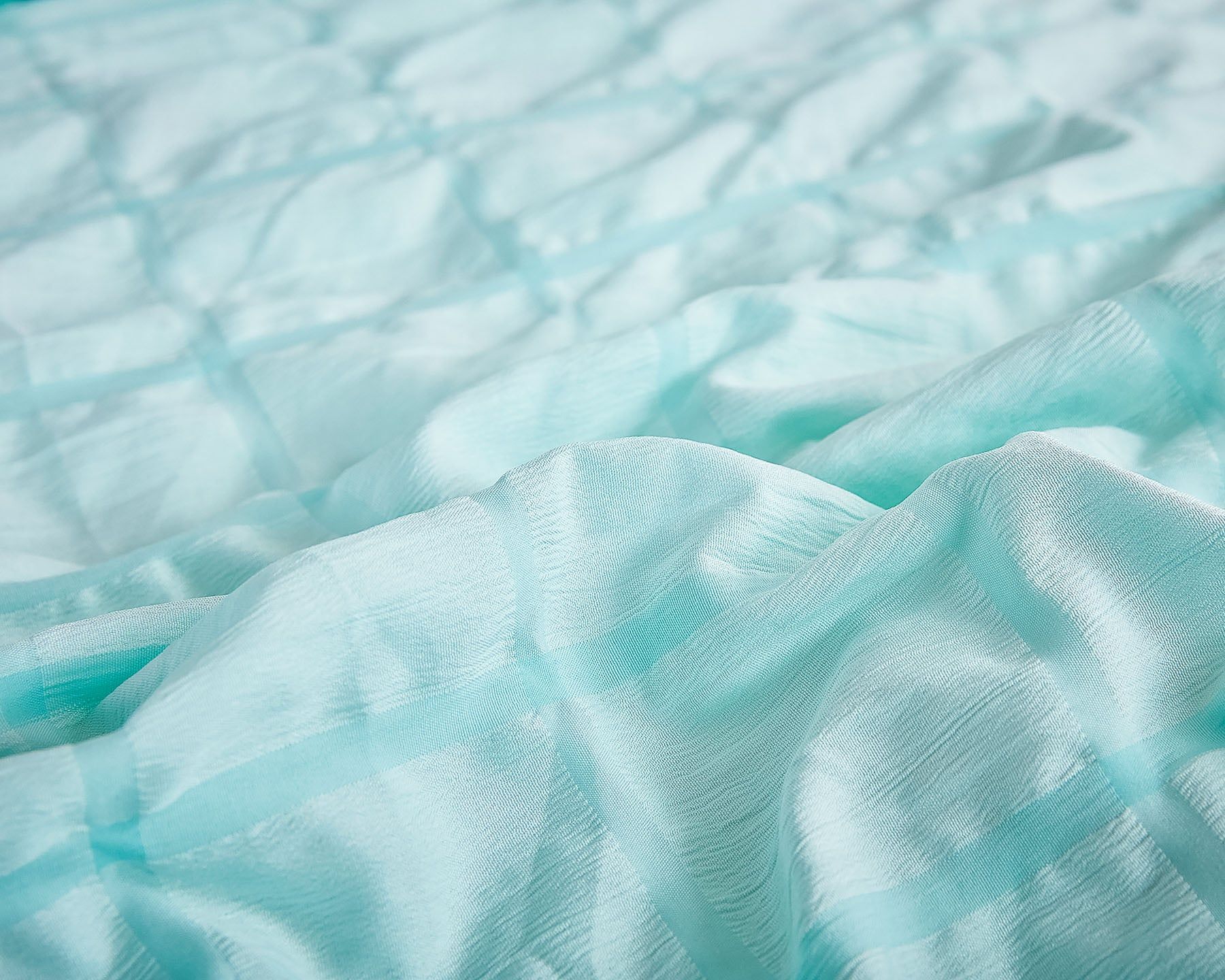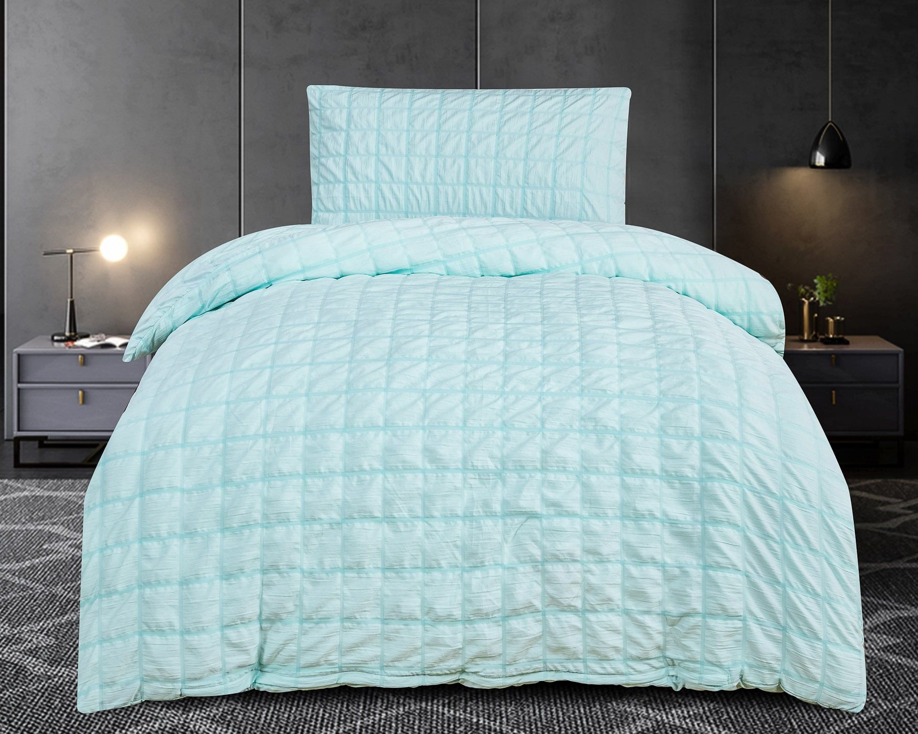 Obláčkové krepové povlečení (též mikrokrep) v mintové barvě vyrobené z kombinaci 65 % polyesteru a 35 % bavlny v gramáži 105 g/m2 se zapínáním na ZIP s jemným kostičkovým vzorem, který vytváří zajímavou strukturu na povrchu látky. Tato krepová úprava má typickou lehce zvlněnou texturu, která povlečení dodává lehkost a vzdušnost. Je proto vhodné nejvíce ne léto. Povlak na polštář 70 x 90 cm a přikrývku 140 x 200 cm je sladěn do jednotného designu pro harmonický vzhled ložnice.Kvalitní ložní povlečení ze 100% bavlny bude skvělým doplňkem Vaší ložnice. Ověřená kvalita materiálu povlečení je zárukou dlouhé životnosti. Povlečení doporučujeme prát na 60°C tiskem dovnitř, při nastavení nižších otáček ždímání si také usnadníte žehlení s vyjímkou krepového povlečení, které se nežehlí. Vyberte si to pravé pro Vás!