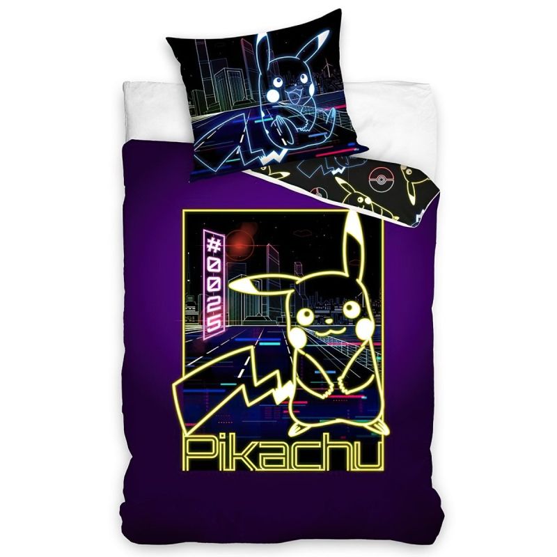 Dětské povlečení POKÉMON PIKACHU NEONOVÁ SHOW SVÍTÍCÍ EFEKT, tmavě fialové, bavlna hladká, 140x200cm + 70x90cm