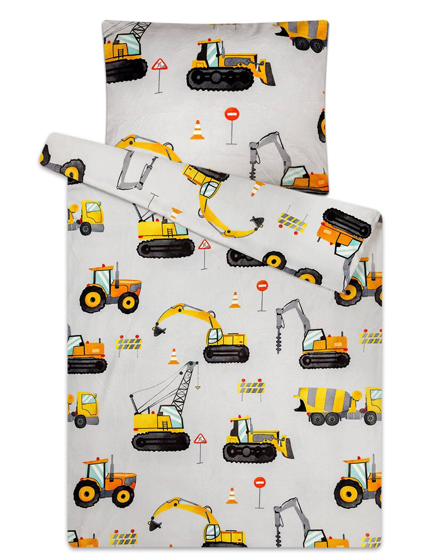 Mikroflanelové povlečení z kolekce Sleep Well s motivem oranžových a žlutých bagrů na šedém pozadí. Mikroflanel se vyznačuje svou velkou hebkostí a hřejivostí v zimě, v létě naopak příjemně chladí. Souprava je vyrobena ze 100% polyesteru a obsahuje jeden povlak na přikrývku 140 x 200 cm a jeden povlak na polštář 70 x 90 cm. Zapínání na zip.Kvalitní ložní povlečení z mikroflanelu bude skvělým doplňkem Vaší ložnice. Materiál je tvořen hustými krátkými chloupky, které zajistí vysokou hřejivost, hebkost a měkkost. Díky svým termoregulačním vlastnostem Vás velmi rychle zahřeje, a je tak doporučováno zejména do chladného období (v létě je naopak možné jej používat jen tak bez přikrývky). Vyberte si to pravé pro Vás!