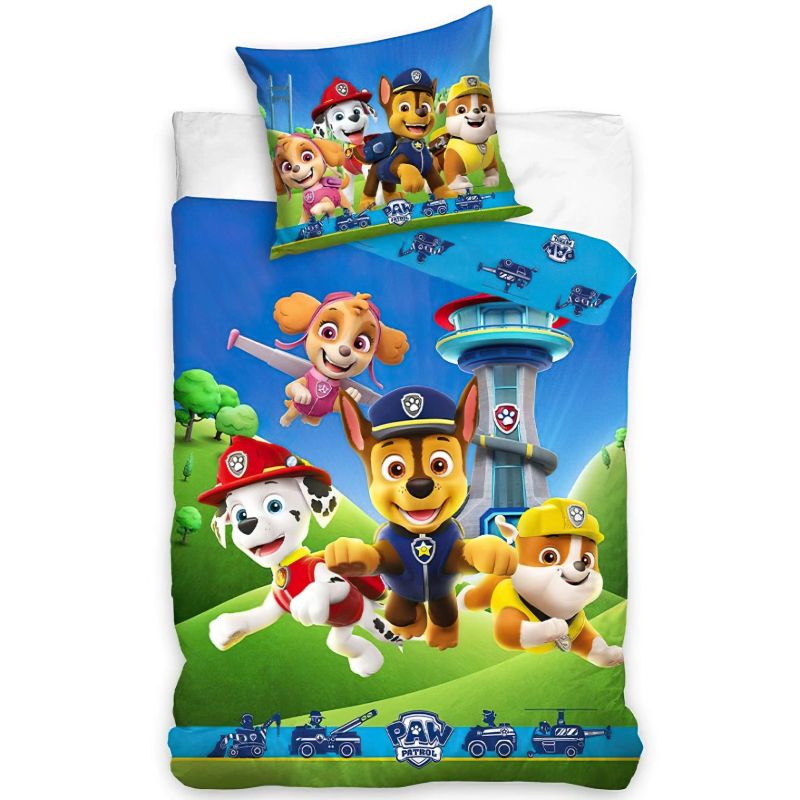 Povlečení dětské TLAPKOVÁ PATROLA BĚŽÍME DO AKCE, modré, mikroplyš, 140x200cm + 70x90cm