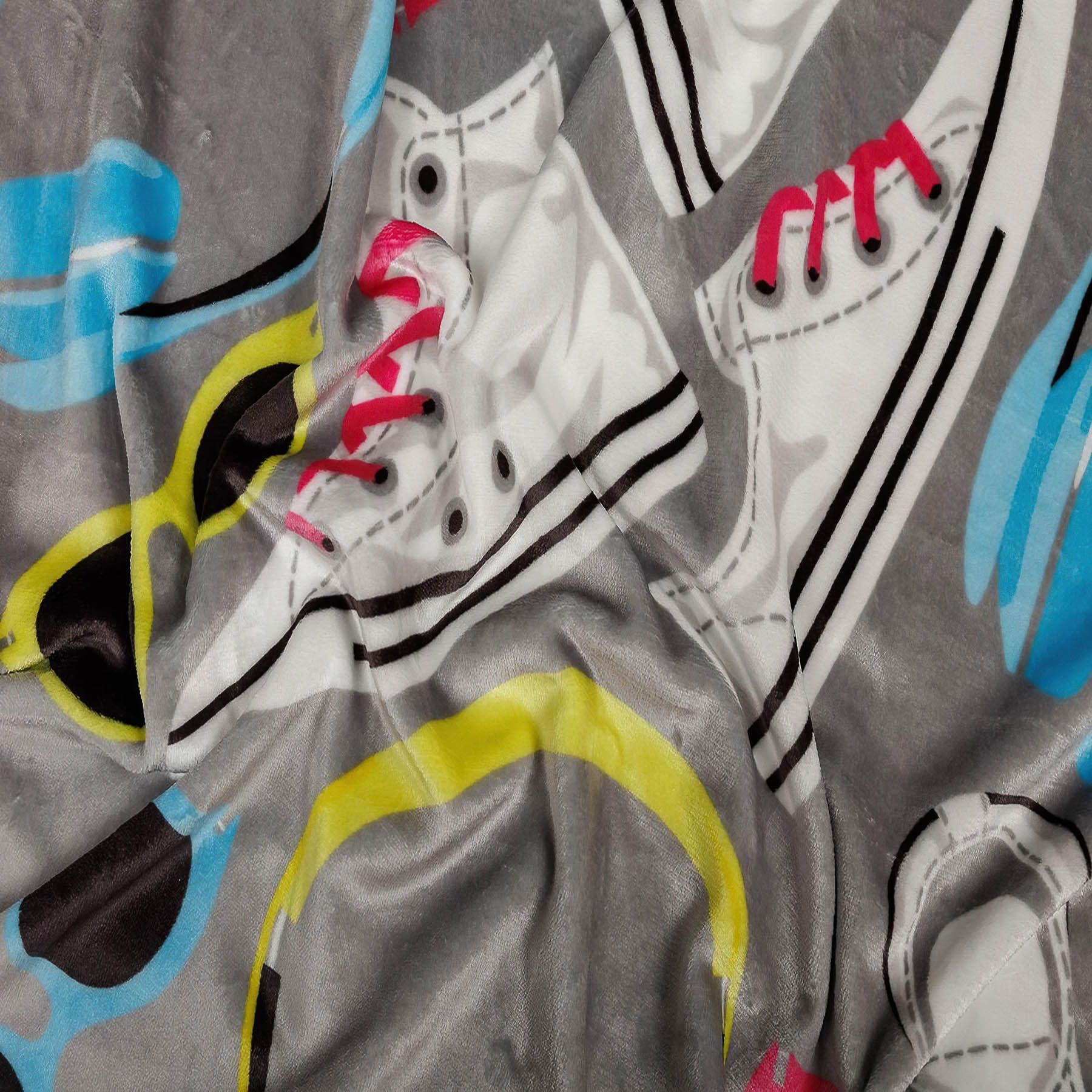 Mikroflanelové povlečení z kolekce Sleep Well s motivem barevných bot, brýlí a sluchátek na šedém podkladu. Mikroflanel se vyznačuje svou velkou hebkostí a hřejivostí v zimě, v létě naopak příjemně chladí. Souprava je vyrobena ze 100% polyesteru a obsahuje jeden povlak na přikrývku 140 x 200 cm a jeden povlak na polštář 70 x 90 cm. Zapínání na zip.Kvalitní ložní povlečení z mikroflanelu bude skvělým doplňkem Vaší ložnice. Materiál je tvořen hustými krátkými chloupky, které zajistí vysokou hřejivost, hebkost a měkkost. Díky svým termoregulačním vlastnostem Vás velmi rychle zahřeje, a je tak doporučováno zejména do chladného období (v létě je naopak možné jej používat jen tak bez přikrývky). Vyberte si to pravé pro Vás!