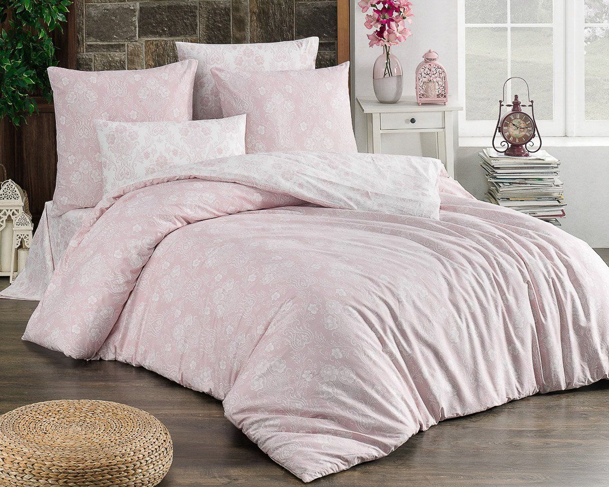 Povlečení ALMINA PUDROVÉ, květiny, bavlna hladká, 140x200cm + 70x90cm