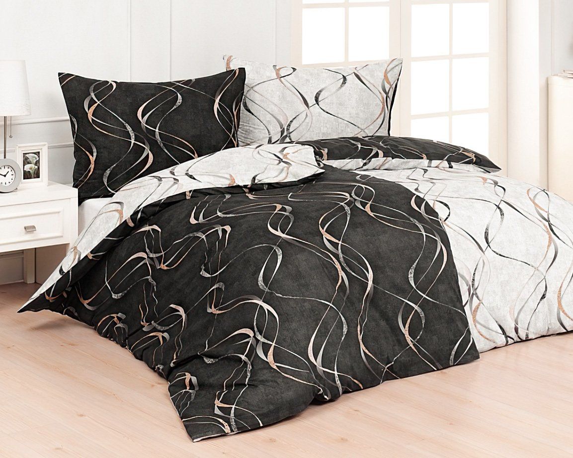 Povlečení Matějovský KINGSTON, šedo-zlaté vlny na černé / světle šedé, 140x200cm + 70x90cm, (více materiálů)