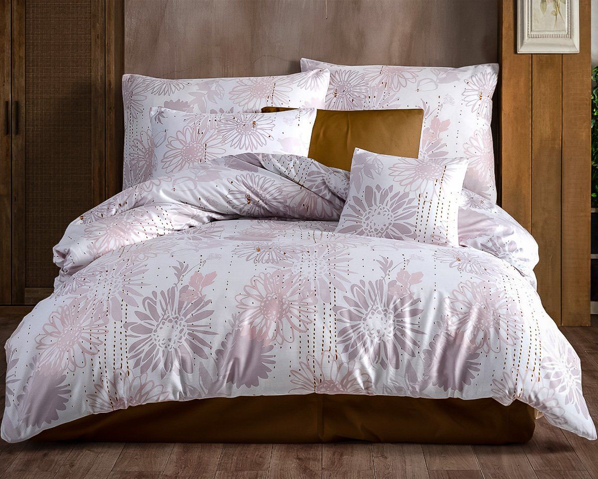 Povlečení SELONS LILA, růžovo-pudrový květinový vzor, bavlna hladká, 140x200cm + 70x90cm