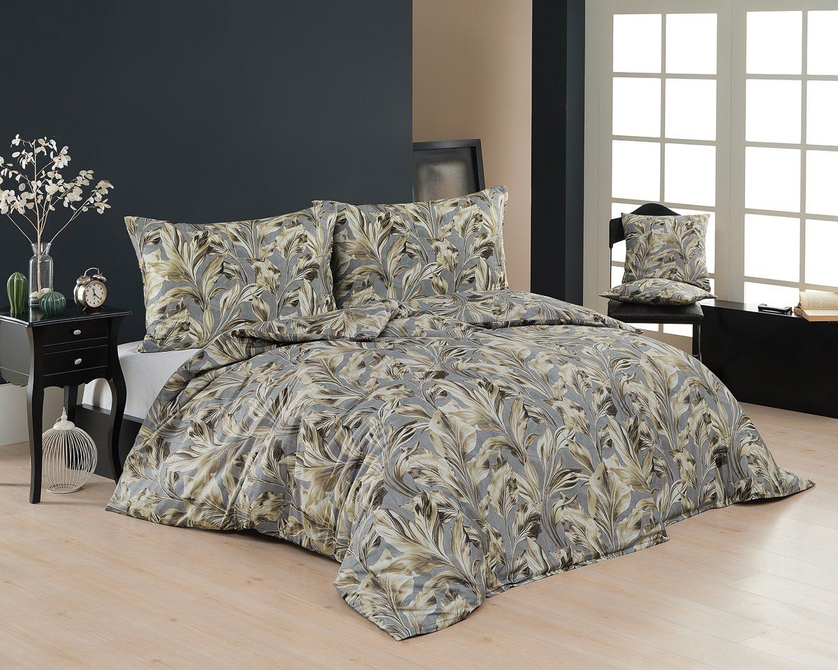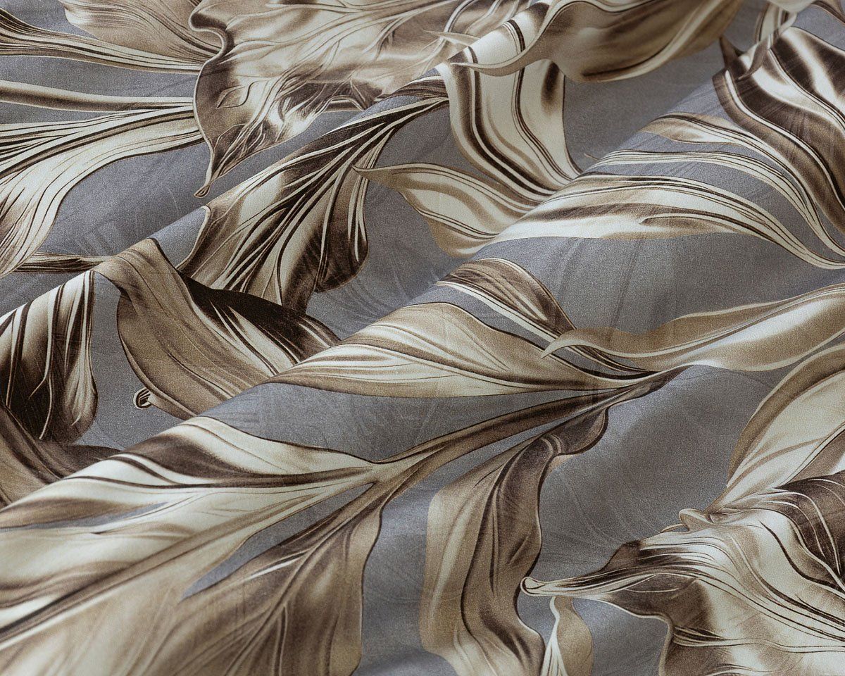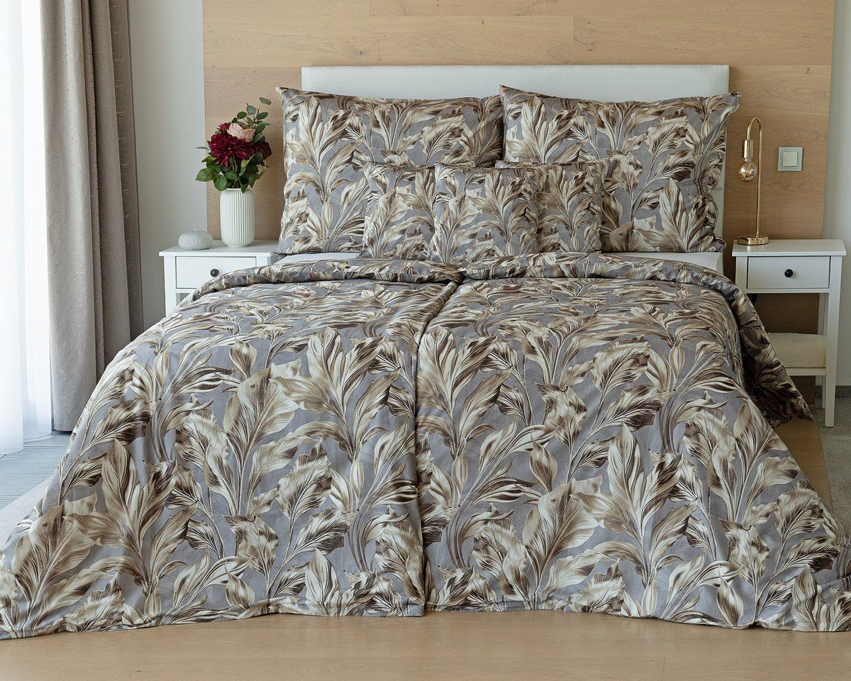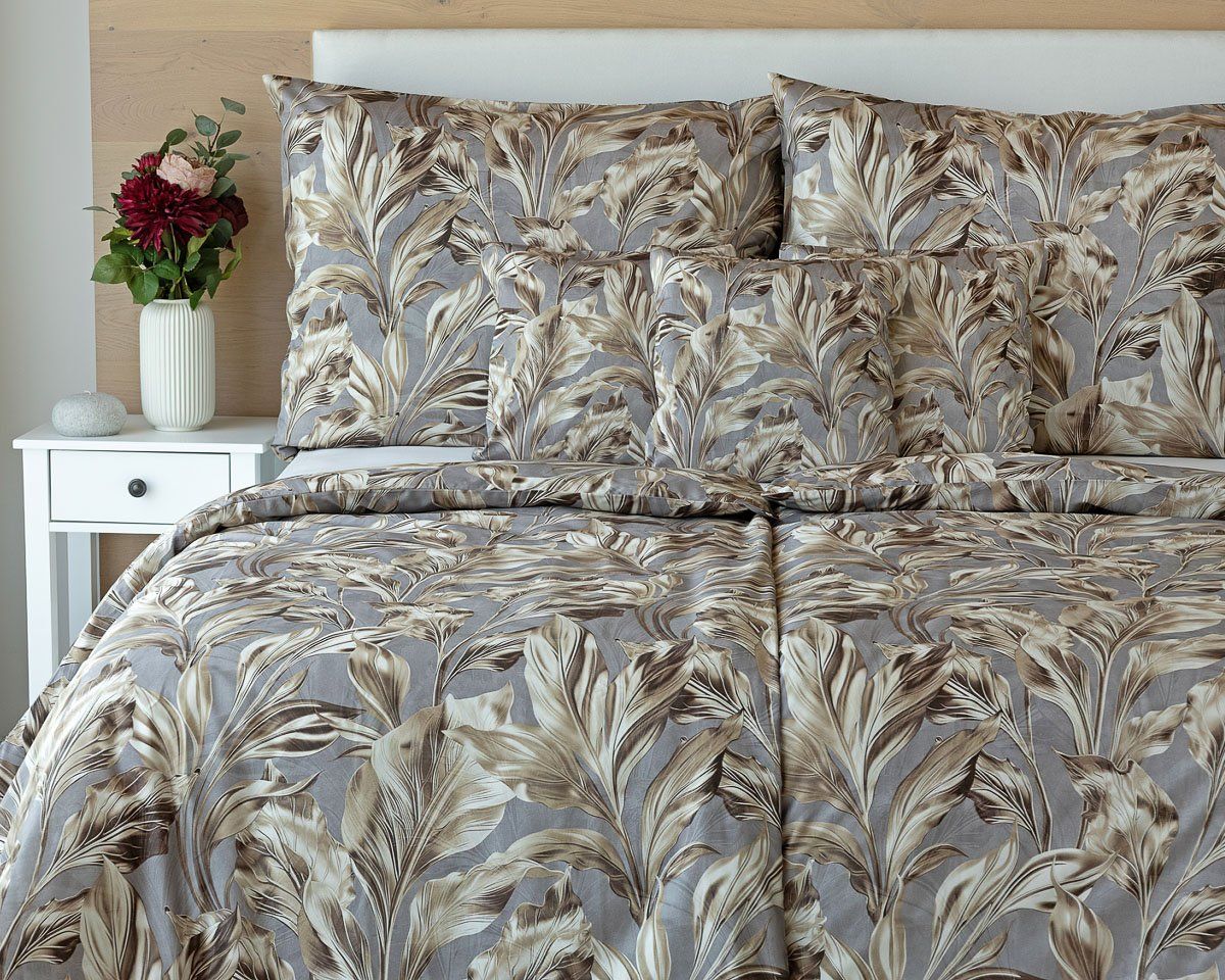 Povlečení Matějovský AMBIENT, florální vzor, béžovo-šedé, bavlněný MAKO satén, 140x200cm + 70x90cm