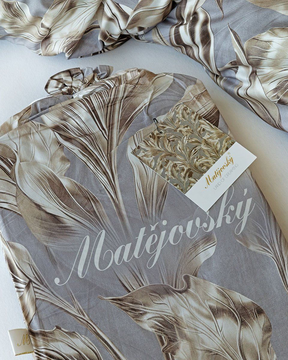 Luxusní povlečení z bavlněného MAKO saténu s krásným vzorem béžových listů na šedém podkladu. Povlečení je z obou stran stejné. Souprava je vyrobena ze 100% bavlny a obsahuje povlak na přikrývku 140 x 200 cm a povlak na polštář 70 x 90 cm. Zapínání na ZIP.Povlečení z kolekce Matějovský ze 100% bavlny. U povlečení z kolekce Matějovský je použit vysoce kvalitní materiál se speciální úpravou, díky které je pevnější a zachová si svůj tvar i po mnoha vypráních. Díky speciální technice tisku je také zaručena barevná stálost. Povlečení doporučujeme prát na 40°C tiskem dovnitř, při nastavení nižších otáček ždímání si také usnadníte žehlení s vyjímkou krepového povlečení, které se nežehlí. Vyberte si to pravé právě pro Vás!