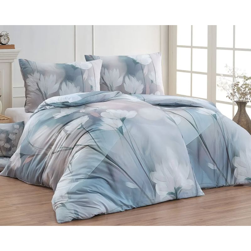 Povlečení Matějovský ELOISE, květinový vzor, modré, bavlněný MAKO satén, 140x200cm + 70x90cm