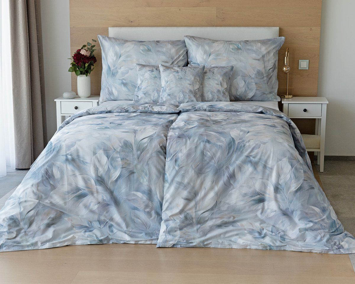 Povlečení Matějovský SAVIO, listy, světle modré, bavlněný MAKO satén, 140x200cm + 70x90cm