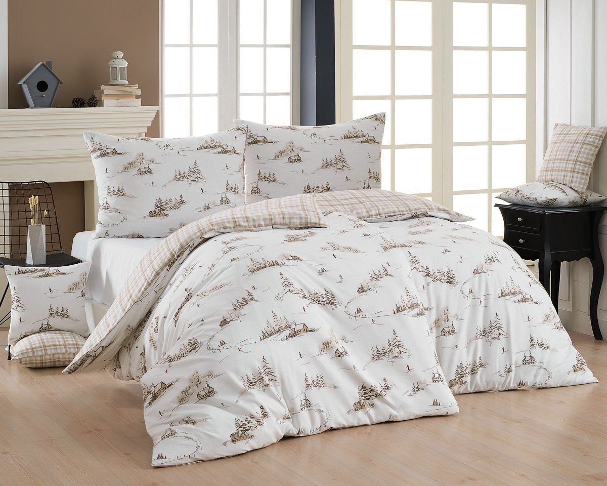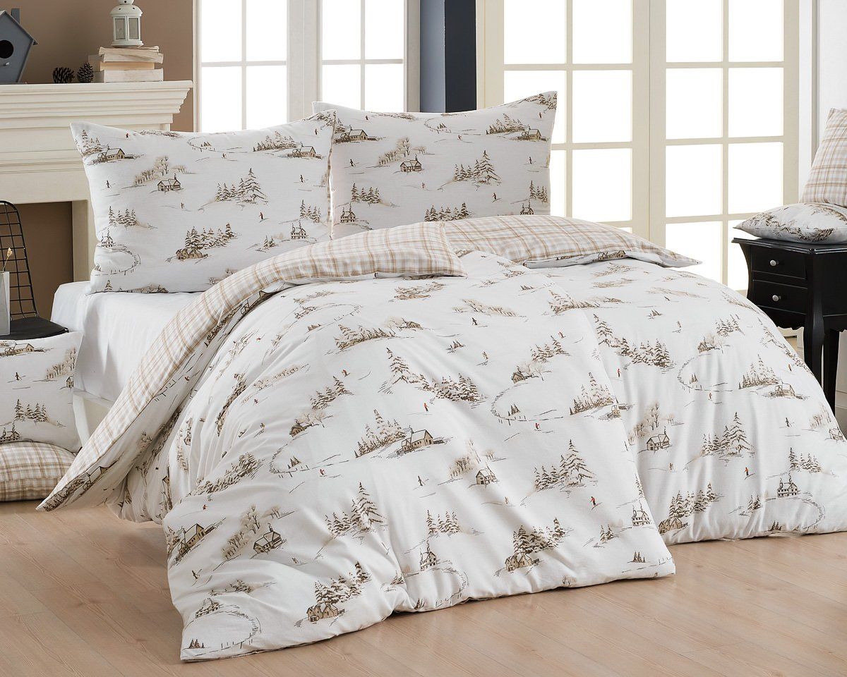 Bavlněné povlečení se vzorem zasněžené krajiny bílém podkladu. Povlak na přikrývku i povlak na polštář jsou oboustranné, z druhé strany mají vzor kára v béžové barvě. Souprava je vyrobena ze 100% bavlny a obsahuje povlak na přikrývku a povlak na polštář. Zapínání na zip.