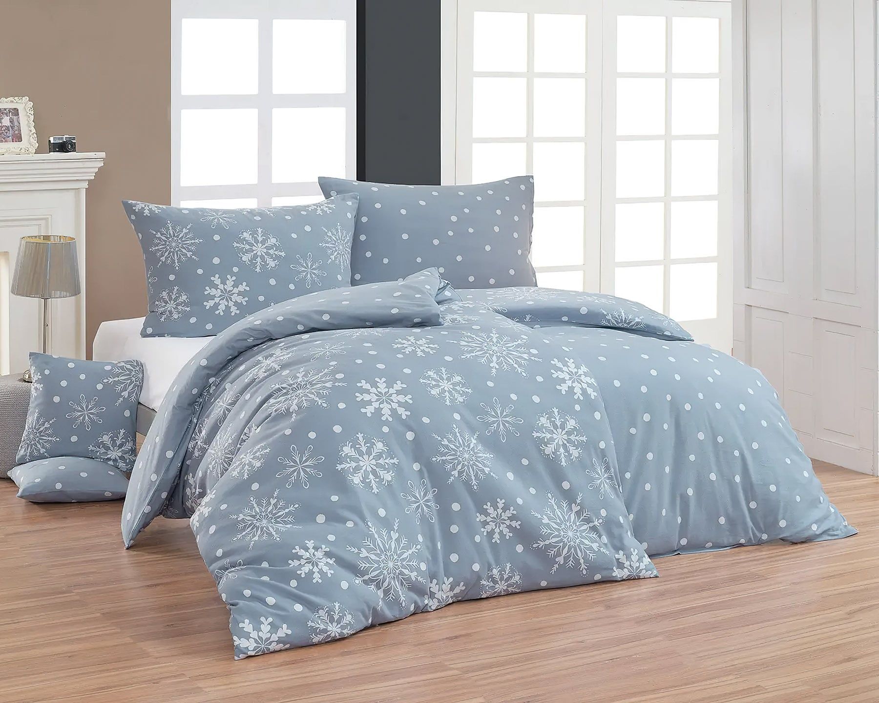 Flanelové povlečení se vzorem sněhových vloček v modré barvě. Povlečení je oboustranné z jedné strany je vzor vloček z druhé strany jsou bílé puntíky na modré. Souprava je vyrobena ze 100% bavlny a obsahuje povlak na přikrývku a povlak na polštář. Zapínání na zip.Povlečení z kolekce Matějovský ze 100% bavlny. U povlečení z kolekce Matějovský je použit vysoce kvalitní materiál se speciální úpravou, díky které je pevnější a zachová si svůj tvar i po mnoha vypráních. Díky speciální technice tisku je také zaručena barevná stálost. Povlečení doporučujeme prát na 40°C tiskem dovnitř, při nastavení nižších otáček ždímání si také usnadníte žehlení s výjimkou krepového povlečení, které se nežehlí. Vyberte si to pravé právě pro Vás!