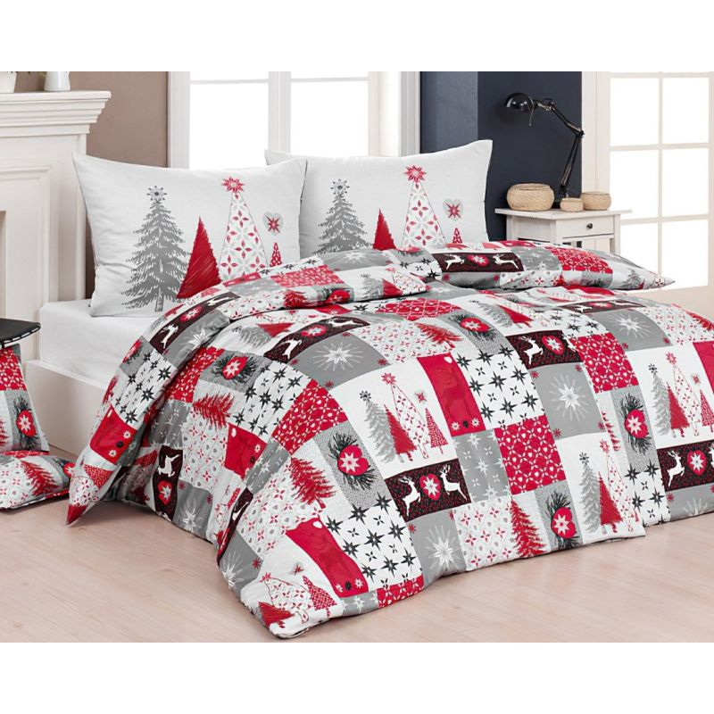 Flanelové povlečení se vzorem vánočních stromků, sobů a hvězdiček v červeno-šedých barvách. Povlečení je oboustranné a z obou stran stejné. Povlak na polštář i na přikrývku jsou z obou stran stejné. Souprava je vyrobena ze 100% bavlny a obsahuje jeden povlak na přikrývku 140 x 200 cm a jeden povlak ...