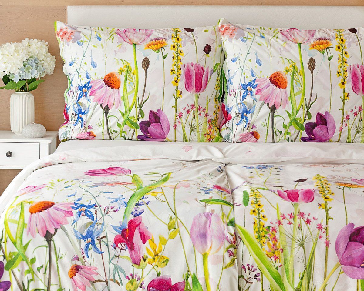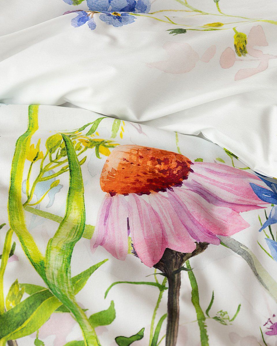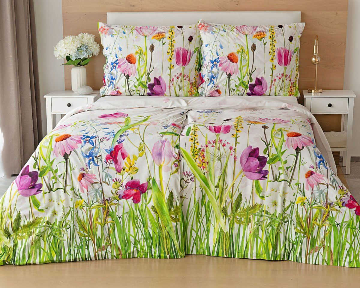 Bavlněné povlečení se vzorem růžových květů v zelené trávě na bílém podkladu. Povlak na přikrývku i povlak má z druhé strany stejný vzor na světle šedém podkladu. Souprava je vyrobena ze 100% bavlny a obsahuje povlak na přikrývku 140 x 200 cm a povlak na polštář 70 x 90 cm. Zapínání na ZIP. Vzor je tištěn nejmodernějším digitálním tiskem, který zajišťuje vysoce precizní detail.Povlečení z kolekce Matějovský ze 100% bavlny. U povlečení z kolekce Matějovský je použit vysoce kvalitní materiál se speciální úpravou, díky které je pevnější a zachová si svůj tvar i po mnoha vypráních. Díky speciální technice tisku je také zaručena barevná stálost. Povlečení doporučujeme prát na 40°C tiskem dovnitř, při nastavení nižších otáček ždímání si také usnadníte žehlení s vyjímkou krepového povlečení, které se nežehlí. Vyberte si to pravé právě pro Vás!