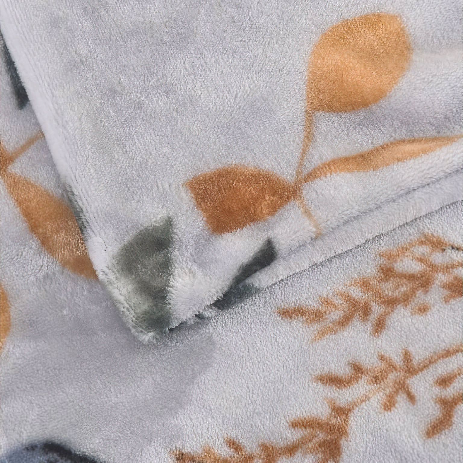 Povlečení GRETA, šedé a hnědé listy na světle šedé / bílé, mikroflanel, 140x200cm + 70x90cm