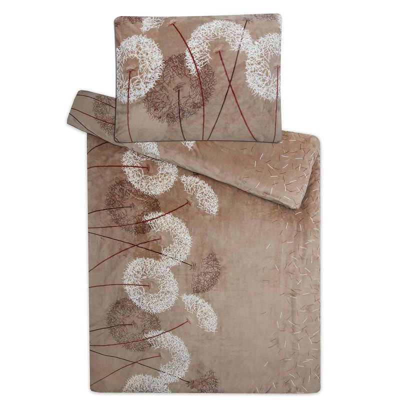 Povlečení PAMPELIŠKA ČOKOLÁDOVÁ SVĚTLÁ mikroflanel, hnědé, 140x200cm + 70x90cm