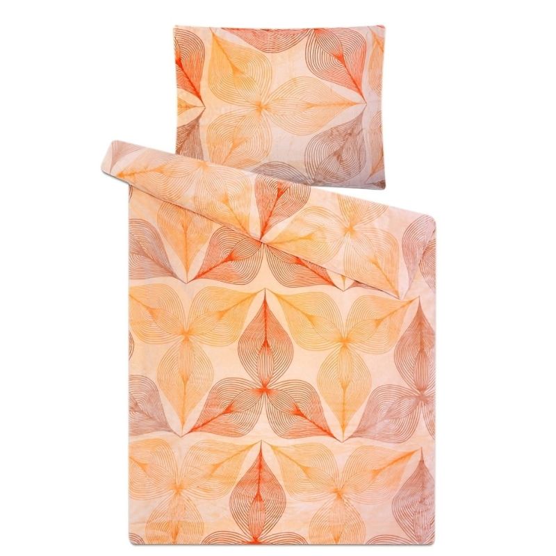 Mikroflanelové povlečení z kolekce Sleep Well s motivem jakoby listů v oranžových barvách. Mikroflanel se vyznačuje svou velkou hebkostí a hřejivostí v zimě, v létě naopak příjemně chladí. Souprava je vyrobena ze 100% polyesteru a obsahuje jeden povlak na přikrývku 140 x 200 cm a jeden povlak na pol...