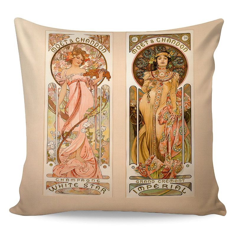 Polštářek / povláček ALFONS MUCHA MOET, béžový, 40x40cm, 40x40cm (více variant výplně)