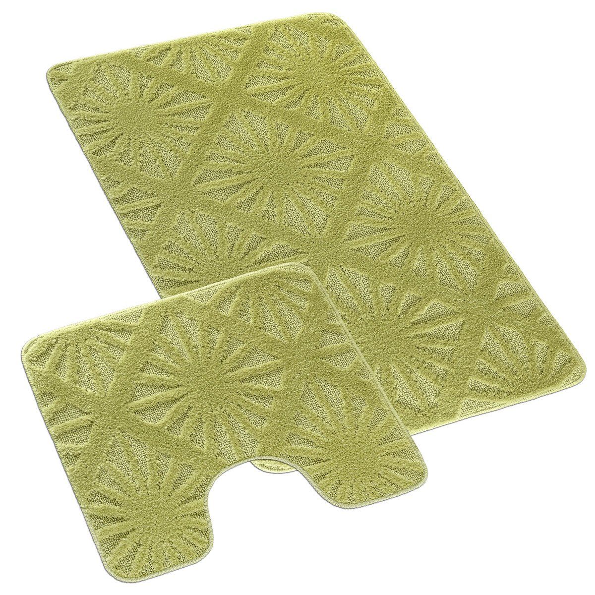 Koupelnové předložky se vzorem paprsků ve světle zelené barvě z kolekce Bany jsou vyrobeny ze 100% polypropylenu. Latexový nátěr na rubu předložky vytváří protiskluzový povrch. Velká souprava se skládá z předložky do koupelny 60 x 100 cm a předložky před WC 60 x 50 cm (lze objednat samostatně).