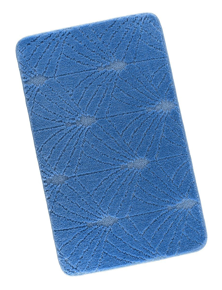 Koupelnové předložky se vzorem květů připomínající chrpu v modré barvě z kolekce Bany jsou vyrobeny ze 100% polypropylenu. Latexový nátěr na rubu předložky vytváří protiskluzový povrch. Velká souprava se skládá z předložky do koupelny 60 x 100 cm a předložky před WC 60 x 50 cm (lze objednat samostatně).