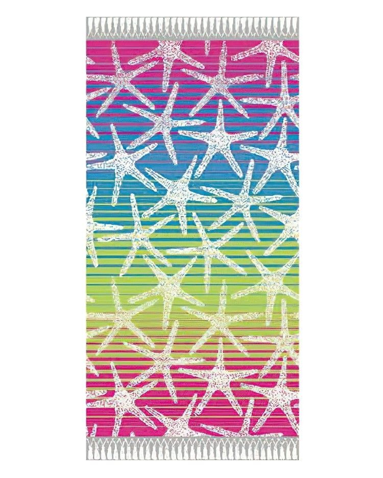 Plážová osuška DELTA, MOŘSKÉ HVĚZDICE, růžová duhová, froté, 90x170cm
