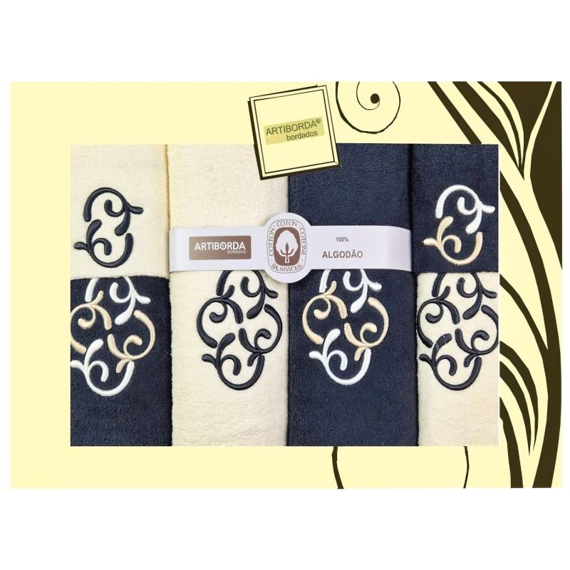 Dárkový set froté ručníků a osušek 180, 6-dílný, černá a krémová s výšivkou 2x 30x50cm + 2x 50x90cm + 2x 70x140cm