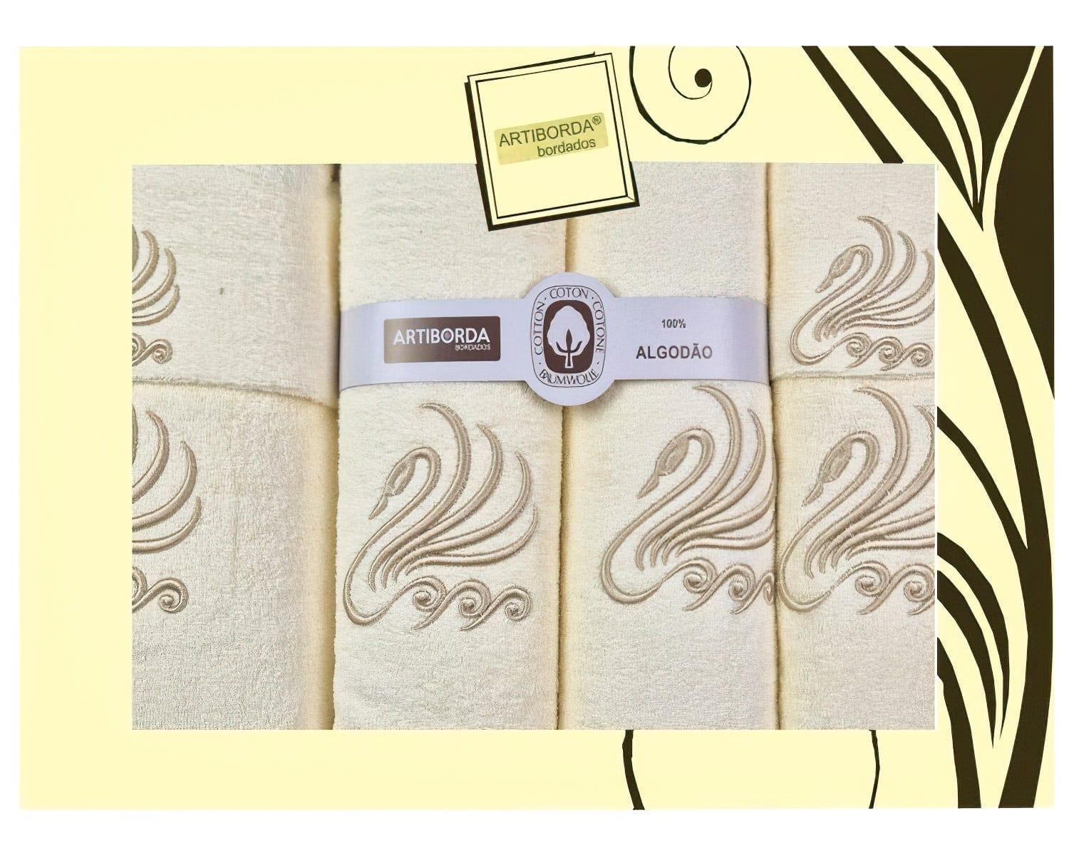 Dárkový set froté ručníků (2x 30x50cm, 2x 50x90cm) a osušek (2x 70x140cm) s vyšívanými labutěmi na krémovém podkladu. Ručníky jsou vyrobeny z vysoce kvalitní 100% bavlny s vysokou gramáží, díky čemuž jsou velmi hebké, savé a mají nadýchaný vzhled. Vyrobeny jsou v gramáži 450g/m2. Dodáváno v dárkovém, krabicovém balení.Froté ručníky a osušky se stanou ozdobou každé koupelny. Osušky a ručníky jsou vyrobeny ze 100% bavlny s vysokou gramáží, díky čemuž jsou velice savé, hebké a příjemné na dotek. Udrží si vlastnosti a barevnou stálost i po mnoha vypráních. Osušky a ručníky doporučujeme prát na 40°C bez aviváže aby se dosáhlo stálé savosti. Žehlení max. 150°C.