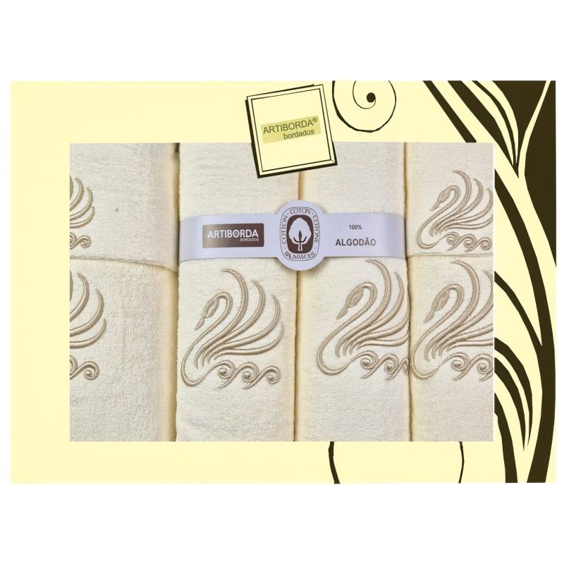 Dárkový set froté ručníků (2x 30x50cm, 2x 50x90cm) a osušek (2x 70x140cm) s vyšívanými labutěmi na krémovém podkladu. Ručníky jsou vyrobeny z vysoce kvalitní 100% bavlny s vysokou gramáží, díky čemuž jsou velmi hebké, savé a mají nadýchaný vzhled. Vyrobeny jsou v gramáži 450g/m2. Dodáváno v dárkovém...